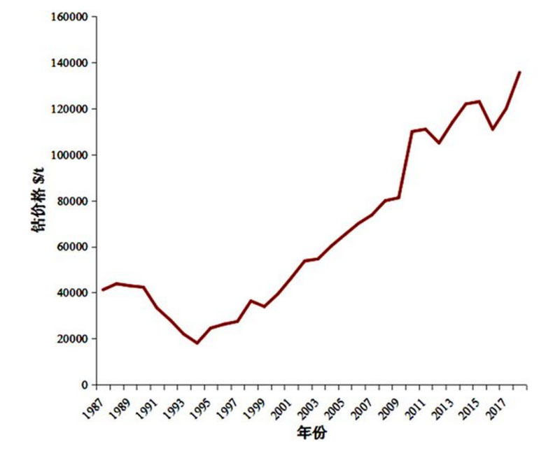 鈷的價格隨年份飆升