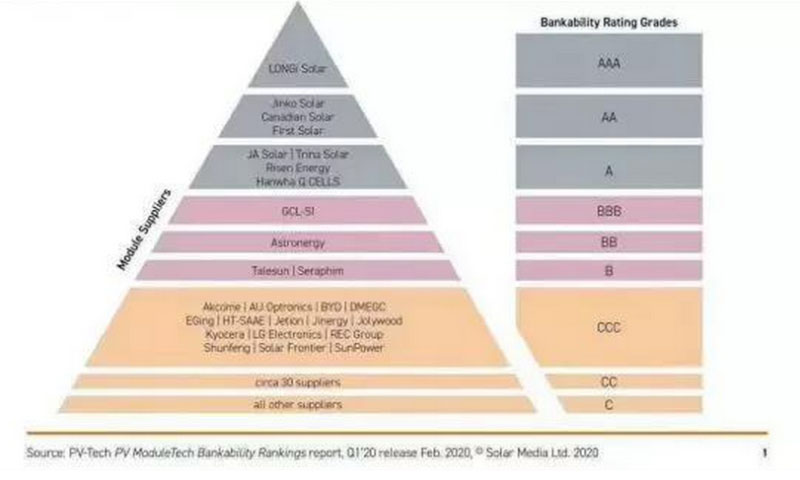 PV MODULE TECH 2020年Q1組件制造商可融資性評級結(jié)果: