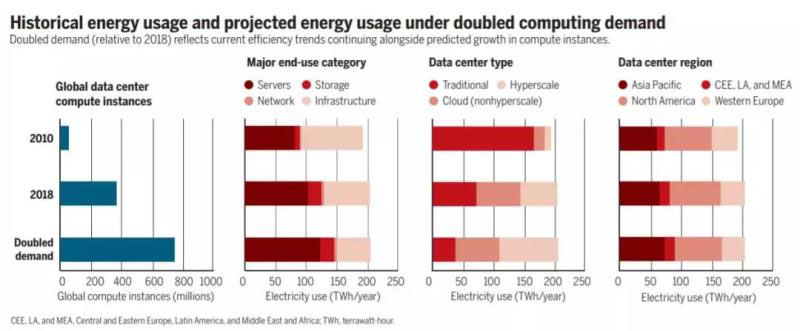 全球數(shù)據(jù)中心能耗趨勢(shì)(來(lái)源:Science)