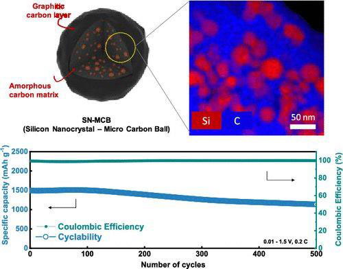 而KIST的新技術則有所不同。Hun-Gi Jung博士及其同事首先將紅薯衍生的淀粉溶解在水中,將硅溶解于玉米衍生的油中,然后將兩種溶液混合并加熱。結果是形成了碳-硅復合材料,其中微小的碳球阻止了硅溶脹。據(jù)悉,當測試時,發(fā)現(xiàn)由復合材料制成的陽極的存儲容量是類似石墨陽極的四倍,但在500次充電/放電循環(huán)中它們仍保持穩(wěn)定。此外,利用新陽極的電池可在短短五分鐘內充滿電至其全部容量的80%。