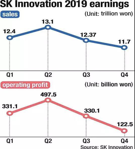 近期,SKI發(fā)布2019年財報顯示,公司去年實現(xiàn)銷售額49.87萬億韓元(約合人民幣2875.4億元),同比下滑8%;營業(yè)利潤1.27萬億韓元(約合人民幣73.2億元),同比下滑39.6%;凈利潤658億韓元(約合人民幣3.8億元),同比下滑96.1%。