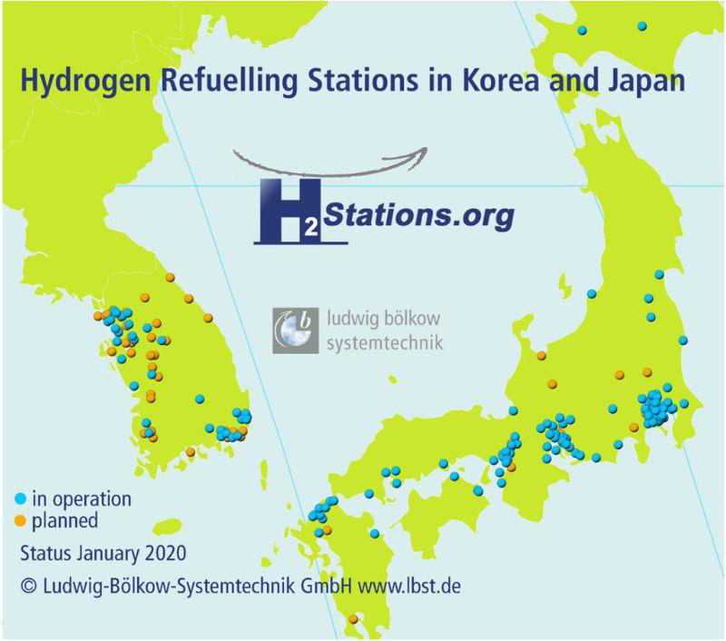 亞洲方面,截止2019年底共有178個(gè)加氫站,日本有114個(gè),韓國(guó)有33個(gè)。已確定的27個(gè)中國(guó)加氫站幾乎專(zhuān)門(mén)用于給公共汽車(chē)或卡車(chē)車(chē)隊(duì)加油。預(yù)計(jì)韓國(guó)將實(shí)現(xiàn)最雄心勃勃的近期增長(zhǎng),計(jì)劃在韓國(guó)計(jì)劃建造約40個(gè)汽車(chē)和公交車(chē)加氫站。