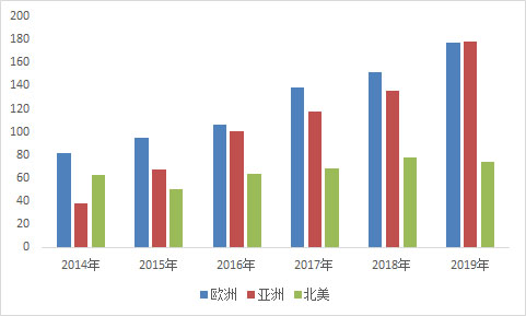 在2019年新增加的83個(gè)加氫站中,其中在歐洲新增了36個(gè),亞洲新增了38個(gè),北美新增了8個(gè),阿拉伯地區(qū)新增了1個(gè)。在具體的國(guó)家中,德國(guó)的加氫站網(wǎng)絡(luò)擴(kuò)展了22個(gè)網(wǎng)點(diǎn),韓國(guó)的網(wǎng)絡(luò)擴(kuò)展了18個(gè),日本的網(wǎng)絡(luò)擴(kuò)展了11個(gè)。從新增的加氫站數(shù)量上可以看出,亞洲和歐洲是氫能產(chǎn)業(yè)發(fā)展最快速的地區(qū)。
