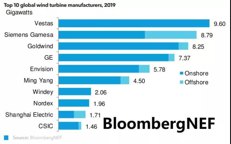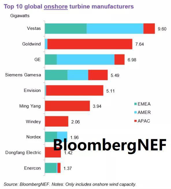 除此之外,明陽智慧能源,運(yùn)達(dá)風(fēng)電,Nordex,東方電氣,Enercon分別位列全球第六至第十。