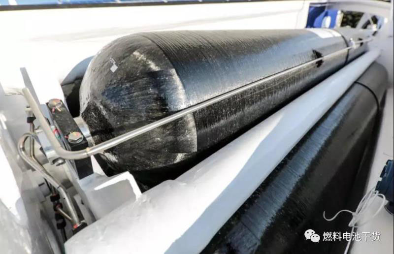 Energy Observer雙體船搭載八個(gè)35Mpa壓力的氫瓶,總?cè)萘繛?32 L,可儲(chǔ)存64 kg的氫氣。工程師最初打算將體積較大的儲(chǔ)氫瓶放在雙體船的船體,最終決定放在雙體船兩翼的外部井形甲板中,可確保儲(chǔ)氫瓶處于防水、防密閉環(huán)境中,并可定期維護(hù)保養(yǎng)。Energy Observer工程師團(tuán)隊(duì)經(jīng)過重量嚴(yán)格分配和氫瓶支撐設(shè)計(jì)計(jì)算,有效提升了雙體船的氫安全和穩(wěn)定性。