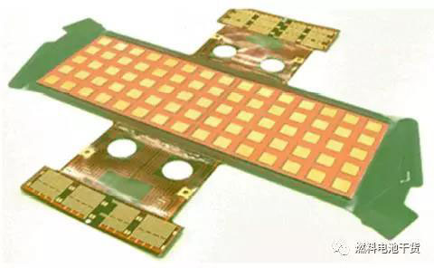 上圖為本田汽車公司開發(fā)的用于CCM平面內(nèi)水分布測量的阻抗測量傳感器。設(shè)計(jì)的傳感器形狀與膜電極相同,可安裝在實(shí)際燃料電池堆中極板間,且無需特殊設(shè)計(jì)極板或密封。傳感器的兩個(gè)表面均具有75個(gè)方形傳感器墊。測量過程中,交流電疊加在整個(gè)燃料電池堆,電阻值由傳感器測量的電流和電壓值計(jì)算得出,并轉(zhuǎn)換為CCM的水含量。