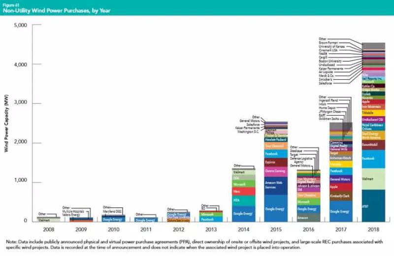 在過去的十年中,出現(xiàn)了一個(gè)振奮人心的趨勢(shì)——美國(guó)的企業(yè)直接依靠風(fēng)力發(fā)電來滿足其電力需求。因風(fēng)能具備在較長(zhǎng)時(shí)期內(nèi)鎖定固定利率的能力,再加上其清潔能源優(yōu)勢(shì),使企業(yè)選擇風(fēng)電變得更加容易,這一趨勢(shì)也將越發(fā)明顯。如今,已有超過144家美國(guó)企業(yè)簽訂了15 GW的風(fēng)力發(fā)電合同,以滿足企業(yè)的能源需求。預(yù)計(jì)到2030年,美國(guó)更多的企業(yè)和工業(yè)客戶將額外購(gòu)買85 GW的可再生能源電力,風(fēng)電行業(yè)的未來前景無疑將更加光明。