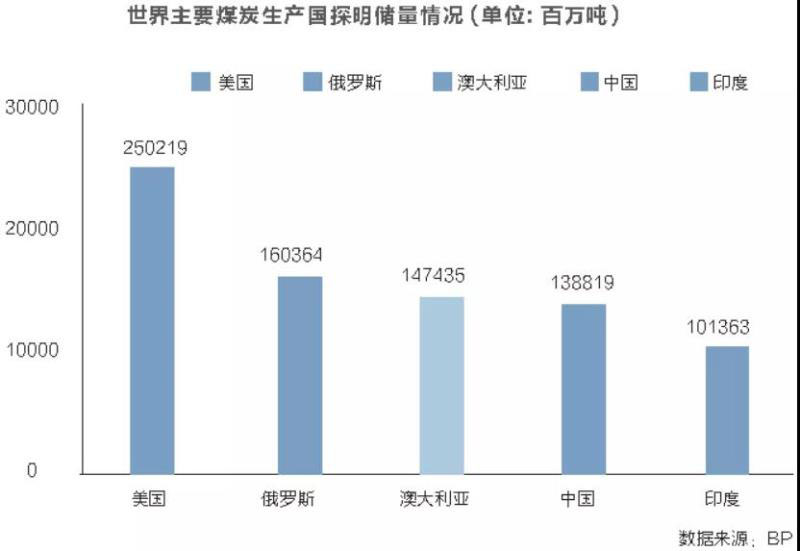 根據(jù)BP《世界能源統(tǒng)計年鑒(2019)》,目前澳大利亞是世界第三大煤炭探明儲量國,第五大世界煤炭生產(chǎn)國。