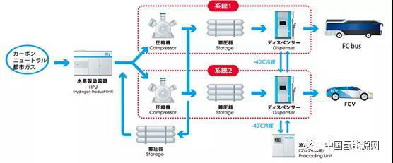 在根據(jù)東京的發(fā)展規(guī)劃,到2020年擁有100多輛燃料電池客車,并且有必要建造一座與燃料電池客車兼容的加氫站。為了滿足這些需求,東京燃氣在豐洲地區(qū)建立了一座豐洲站,該城市正在發(fā)展具有出色的環(huán)境和防災(zāi)性能的城市,并在此范圍內(nèi)擴展燃料電池的移動性,包括燃料電池公共汽車。