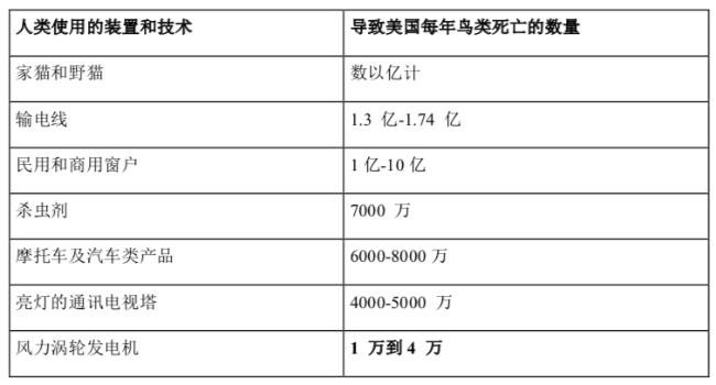 對(duì)于大多數(shù)專家而言,關(guān)于鳥類死亡率的爭議存在著一定的問題。大量的死亡率研究表明,至少和其它人造裝置相比,風(fēng)力渦輪機(jī)殺死的鳥類相對(duì)而言非常少。但是,如果你想要知道到底有多少人因?yàn)橐S護(hù)鳥類的利益而強(qiáng)烈反對(duì)使用風(fēng)力渦輪發(fā)電機(jī),那么這一統(tǒng)計(jì)數(shù)字確實(shí)十分驚人。