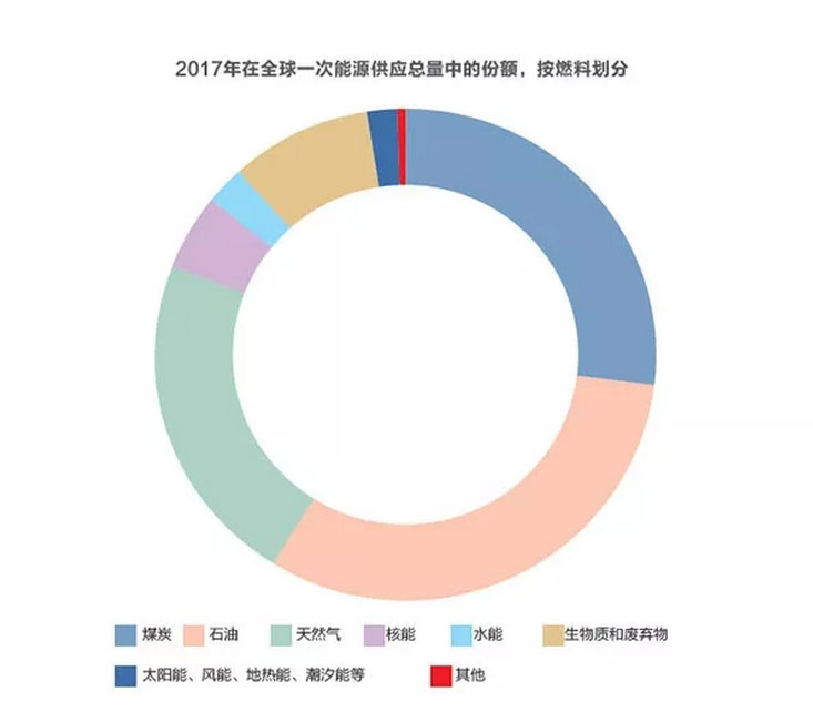 2017年,世界一次能源總供應(yīng)量為139.72億噸油當(dāng)量,其中13.5%或1894萬(wàn)噸油當(dāng)量(2016年為1845萬(wàn)噸油當(dāng)量)來(lái)自可再生能源。