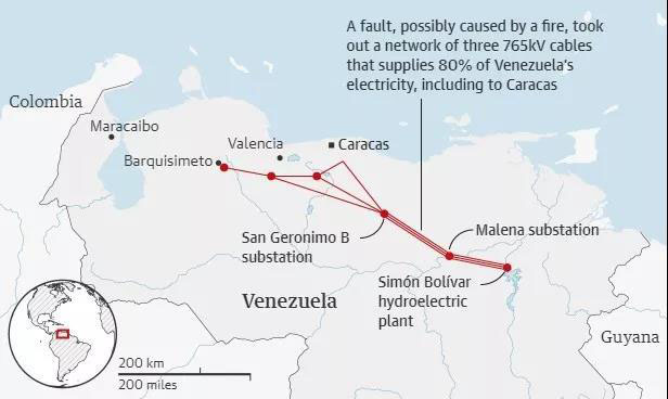 委內(nèi)瑞拉規(guī)模最大的古里水力發(fā)電站3月7日發(fā)生事故(古里大壩是世界上規(guī)模最大的水電站之一,其發(fā)電量構(gòu)成了委內(nèi)瑞拉國家電網(wǎng)的支柱),導(dǎo)致委內(nèi)瑞拉全國大范圍停電,23個州中僅有5個未受波及,是該國史上規(guī)模最大的停電事件之一。