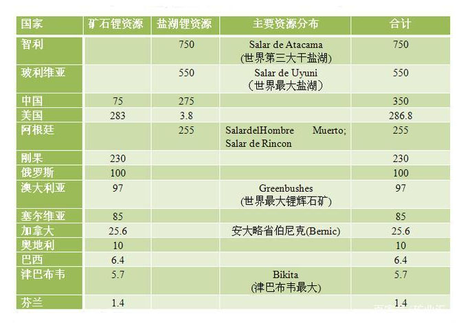 各國鋰資全球主要鋰礦床分布圖