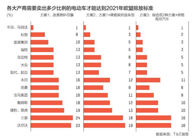 針對2021年目標(biāo),歐盟方面設(shè)置了2020年一年的緩沖期,新車導(dǎo)入比例為95%。需要指出的,如果違約,汽車制造商必須為超出的二氧化碳排放繳付巨額罰款。