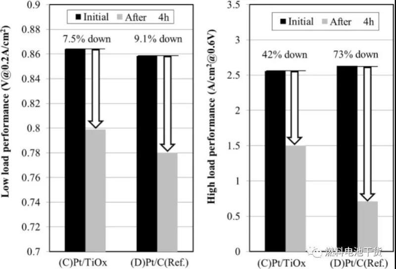 高電位測(cè)試(1.3 V/4 hours/80℃)中陰極載體耐久性