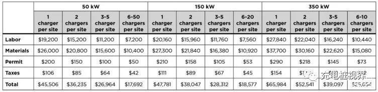 在ICCT的估計(jì)中,50kW、150kW和面向800V的350kW充電樁的成本估計(jì)如下面兩張表所示,在安裝費(fèi)用里面也有很多我們?cè)趪?guó)內(nèi)無(wú)法理解的部分,實(shí)際如果從我們國(guó)內(nèi)在成本層面的控制能力,這個(gè)差異遠(yuǎn)沒(méi)有這么夸張。但是即使有這么多場(chǎng)外因素,依然可以觀察到從整體布局來(lái)看,充電設(shè)施是跑步進(jìn)入150kW的,而且覆蓋的電壓范圍是包括400V&800V的區(qū)段,這使得所有未來(lái)在美國(guó)上市的純電動(dòng)車,充電功率都貼近于150kW和350kW這樣的充電設(shè)施所能提供的功率。