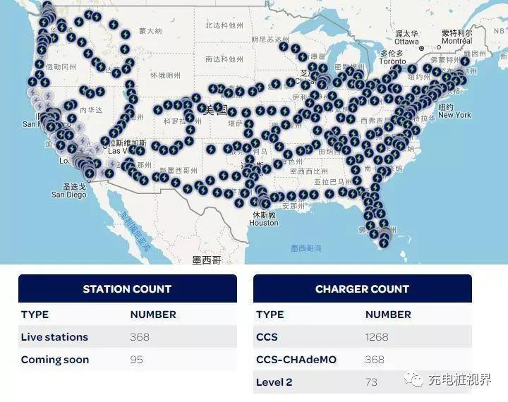 如上圖所示,EA目前在美國(guó)擁有340多個(gè)充電站點(diǎn)(有130多個(gè)左右已建成,在等待開(kāi)放),目前包含了1600+(400個(gè)還沒(méi)啟用)多個(gè)充電樁。在第二階段完成之后,到2021年底會(huì)有800個(gè)充電站,包含約3500個(gè)充電樁。