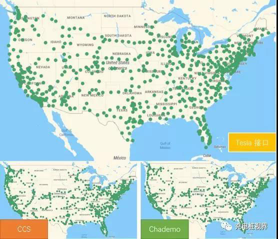 2. 直流充電網(wǎng)絡(luò)目前美國(guó)的直流充電網(wǎng)絡(luò)達(dá)到了近1.4萬(wàn)個(gè),可以對(duì)比一下Chademo、Combo1 和Tesla Super charging的情況。其中單純的Chademo和CCS都僅有幾百個(gè),大部分直流樁都是兩種接口標(biāo)準(zhǔn)都可以充電,這類直流樁達(dá)到了5118個(gè),而特斯拉的充電樁則達(dá)到了7624個(gè),然而就這樣還存在常常排隊(duì)充電的情況。