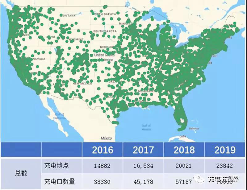 圖1 美國(guó)充電設(shè)施增長(zhǎng)情況