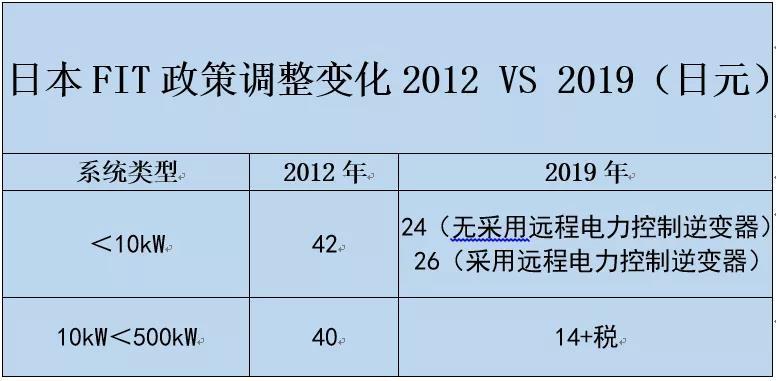 日本FIT政策調(diào)整變化2012 VS 2019(日元)