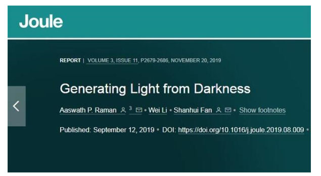 科學(xué)家們研發(fā)出的這種成本極低的新型方案,實際上是通過從黑暗中捕獲能量,然后像太陽能電池板那樣工作。他們利用太陽和地球之間的溫差來創(chuàng)造可用的能量。