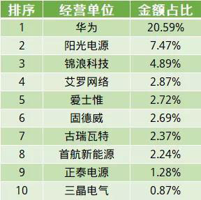 從企業(yè)出口金額看,華為、陽光電源、錦浪科技位列出口金額前三甲,10月出口金額均超過1000萬美元,三家企業(yè)占出口總額比重達到33%。
