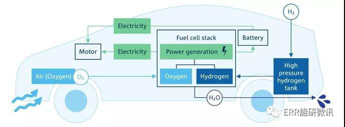 燃料電池電動(dòng)汽車包括一個(gè)燃料電池組,一個(gè)氫燃料箱以及一個(gè)小電池