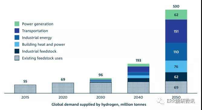 氫能理事會(huì)對(duì)2050年氫需求增長的預(yù)測