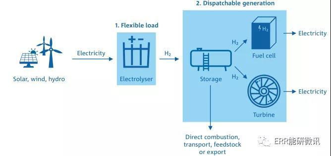 由電力和水生產(chǎn)氫氣的電解裝置提供了一個(gè)快速響應(yīng)負(fù)載,非常適合后續(xù)間歇性可再生能源發(fā)電。作為電力負(fù)荷,電解裝置可以進(jìn)行快速的升降而不產(chǎn)生任何后果,從而為電網(wǎng)的頻率控制服務(wù)做出貢獻(xiàn)。一旦生產(chǎn)出來,儲(chǔ)存的氫可以用于渦輪機(jī)或燃料電池來發(fā)電。這些能力將有助于國家電網(wǎng)的恢復(fù)能力。