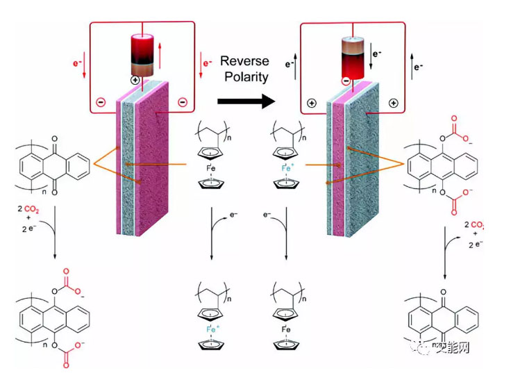成本和儲(chǔ)能密度方面,作者沒(méi)有過(guò)多提及。不過(guò)可以猜的是,這項(xiàng)技術(shù)的經(jīng)濟(jì)性會(huì)好于原有的技術(shù)。一方面,電極沒(méi)有用到稀有金屬,所使用的蒽醌和二茂鐵也都實(shí)現(xiàn)了人工合成,成本不會(huì)太高。另一方面,這項(xiàng)技術(shù)既可以用于碳交易,用于電力負(fù)荷的削峰填谷,反應(yīng)過(guò)程不需要加熱或加壓,也節(jié)省了大量能源開(kāi)支,捕獲的二氧化碳還可用于生產(chǎn)尿素等工業(yè)產(chǎn)品。不過(guò),其儲(chǔ)能密度應(yīng)該不大。一方面,部分空間需要留作氣道,增加了裝置的體積,另一方面,真正發(fā)生反應(yīng)的只有表面的一層聚蒽醌,能儲(chǔ)存的電量有限。由于捕獲二氧化碳終究需要能量,其單次循環(huán)效率不高。不過(guò),這項(xiàng)技術(shù)最初就是作為碳捕獲技術(shù)而研究,其儲(chǔ)能的特性可以作為錦上添花。