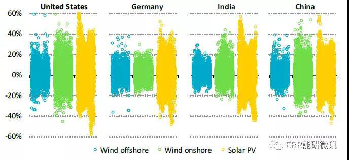 項(xiàng)目發(fā)電時(shí)模擬的小時(shí)到小時(shí)變化范圍按技術(shù)劃分