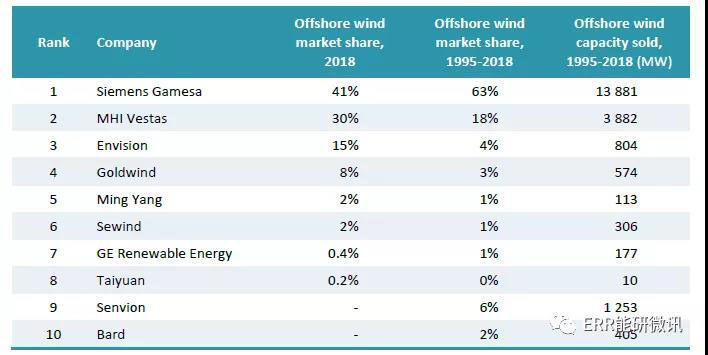 2018年海上風(fēng)電風(fēng)機(jī)主要制造商