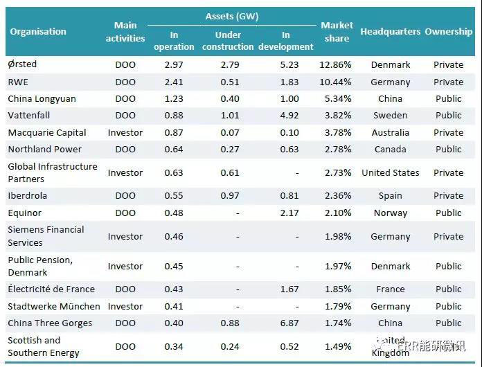 2018年海上風(fēng)電行業(yè)領(lǐng)先市場(chǎng)參與者