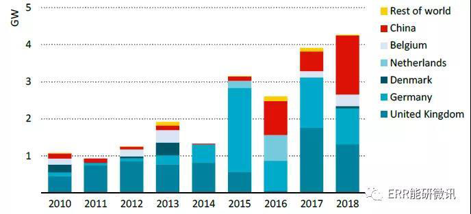 2010~2018年,全球海上風(fēng)電市場(chǎng)年均增長(zhǎng)近30%,得益于快速的技術(shù)改進(jìn)。在未來(lái)五年內(nèi),全球計(jì)劃完成約150個(gè)新建海上風(fēng)電項(xiàng)目,這表明海上風(fēng)電在電力供應(yīng)中的作用越來(lái)越大。英國(guó)、德國(guó)和丹麥推動(dòng)了歐洲的海上風(fēng)電技術(shù)發(fā)展。2018年,英國(guó)15%的電力來(lái)自海上風(fēng)電。2018年,中國(guó)新增的海上風(fēng)電裝機(jī)超過(guò)世界其他國(guó)家。