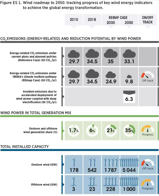 中國(guó)儲(chǔ)能網(wǎng)訊:國(guó)際可再生能源署(IRENA)在北京發(fā)布“風(fēng)電未來(lái)”報(bào)告,包括這樣一張表格: