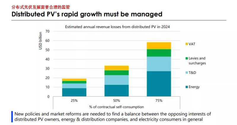 該報(bào)告還指出,分布式光伏呈現(xiàn)爆發(fā)式增長可能會(huì)挑戰(zhàn)可再生能源的電網(wǎng)調(diào)節(jié)能力并降低網(wǎng)絡(luò)運(yùn)營商的收入來擾亂電力市場,為平衡各方參與者的不同利益訴求,需要對其進(jìn)行妥善管理。