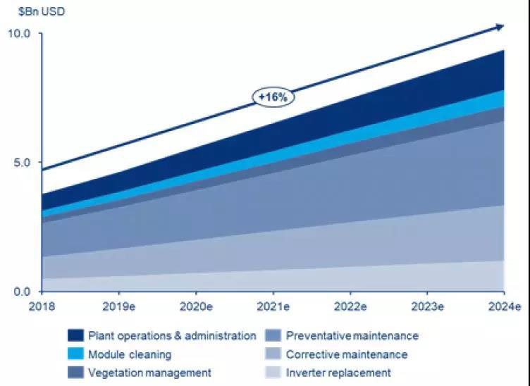 根據(jù)Wood Mackenzie的數(shù)據(jù),對于50MW太陽能系統(tǒng),逆變器更換成本僅占平均運維成本的12-13%。不斷降低的逆變器成本和制造商利潤導(dǎo)致了逆變器更換成本的不斷下降。