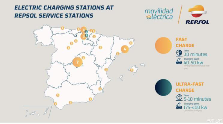 『西班牙境內(nèi)Repsol充電站分布 超級(jí)充電站目前僅有兩處』