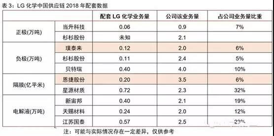 以下是LG化學(xué)中國供應(yīng)鏈在2018年的配套數(shù)據(jù)(資料來源:B3 CY2018):