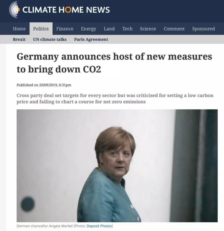 德國(guó)政府推出“2030年氣候保護(hù)計(jì)劃”,包括在2021年之前在運(yùn)輸和建筑行業(yè)建立碳定價(jià)體系, 作為對(duì)歐洲排放交易系統(tǒng)(ETS)的補(bǔ)充,因?yàn)樵撓到y(tǒng)僅限于能源和工業(yè)排放。