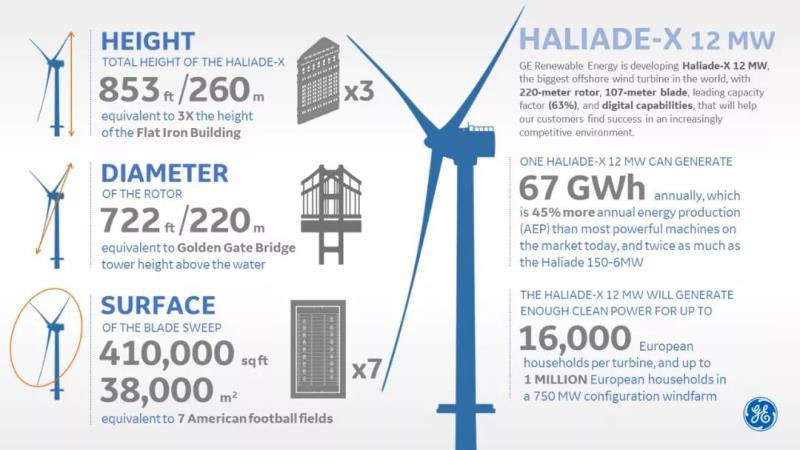 Haliade-X創(chuàng)記錄的220米直徑的風(fēng)輪將捕獲風(fēng)力驅(qū)動(dòng)直驅(qū)永磁發(fā)電機(jī)傳輸系統(tǒng),總?cè)萘肯禂?shù)達(dá)63%。按照GE的數(shù)據(jù),Haliade-X與MHI Vestas和西門子歌美颯目前出售的10 MW風(fēng)機(jī)相比,每臺(tái)風(fēng)機(jī)的單位收入將提高3500萬至5000萬美元。