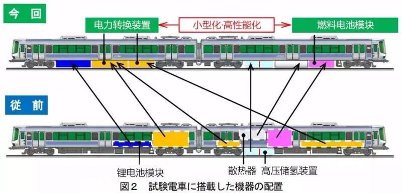 R291列車(chē)的燃料電池由于高輸出密度化、冷卻裝置的分散配置等優(yōu)點(diǎn),使燃料電池模塊的輸出功率增加了50%,輸出體積減少20%。同時(shí)燃料電池的體積得以減小,使其適合安裝在地板下。
