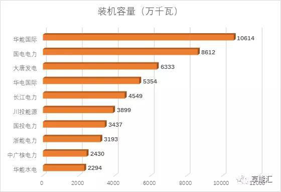 從上市企業(yè)裝機容量靠前企業(yè)來看,華能國際以10614萬千瓦的裝機容量列于首位,總體來看,除前4位,其他企業(yè)裝機容量均低于5000萬千瓦時。