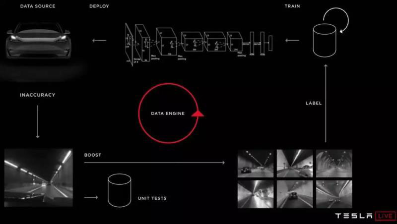 特斯拉在全球有超過70萬輛車在路上行駛,它把每輛車、每一個(gè)傳感器、每一個(gè)“事件”(即人與方向盤、制動(dòng)踏板等的相互作用)作為數(shù)據(jù)點(diǎn)。獲取這些數(shù)據(jù),對(duì)其進(jìn)行分析,并利用這些數(shù)據(jù)改進(jìn)算法,創(chuàng)建新的算法,并將這些改進(jìn)通過空中升級(jí)OTA傳送到車輛上。