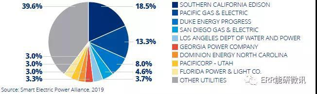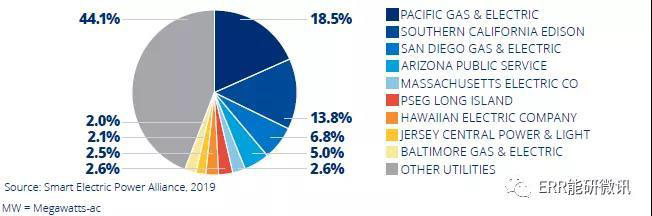 2018年,圣地亞哥天然氣和電力公司(SDG&E)、南加州愛迪生公司(SCE)和太平洋天然氣和電力公司(PG&E)部署了740.6MW的居民太陽能,占2018年部署的所有居民太陽能的39.1%。在過去的三年里,這三家公用事業(yè)公司和亞利桑那州公共服務(wù)公司是全國唯一每年將100MW以上的居民太陽能接入電網(wǎng)的公用事業(yè)公司。