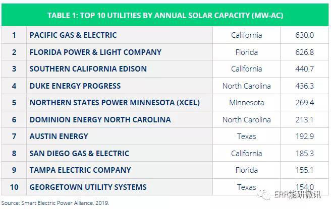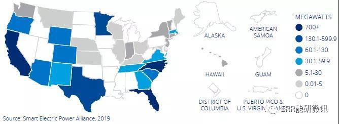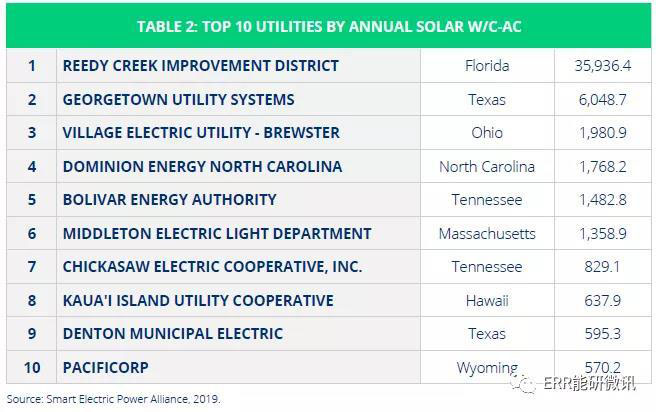 在得克薩斯州,公共電力公司奧斯汀能源公司和喬治敦公用事業(yè)系統(tǒng)公司在SEPA年度太陽能裝機容量排名前10,這兩家公用事業(yè)在2018年共有346.9MW并網(wǎng),占全國新增太陽能裝機的68.1%。