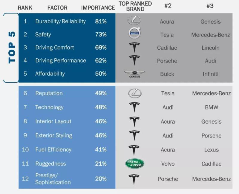編輯語:從統(tǒng)計數(shù)據(jù)來看,Model 3也確實是觀念顛覆者,根據(jù)上周的Kelley Blue Book(凱麗白皮書)調(diào)查顯示,人們正在拋棄舊有的觀念,開始愛上Model 3極簡主義的內(nèi)飾,這讓特斯拉在面對傳統(tǒng)豪華品牌的競爭中脫穎而出,在多項排名中,Model 3都拿下了第一的成績,統(tǒng)治了北美豪華車市場。
