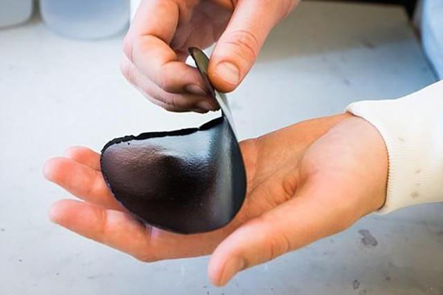 這是一種由納米纖維素——與應(yīng)用在紙張中的纖維素類似——制成的材料。在高壓水柱的作用下,這種“紙”的纖維能做到只有20納米厚,相比之下,人的頭發(fā)直徑約為100000納米,是該纖維厚度的5000倍。在納米纖維的外層,覆蓋著一層溶解在水溶液里的帶電聚苯乙烯塑料。