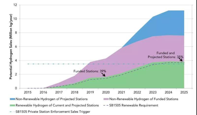 AB 8 ——2024年加州至少建成100座加氫站,來自加州2013年8號(hào)法案 (Perea, Statutes of 2013, Chapter 401)。