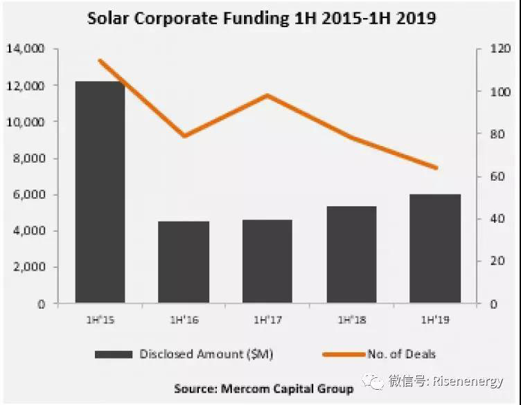 公司表示,2019 年二季度的太陽能融資額為33億美元,較 2018 年二季度的29億美元同比增長12%。